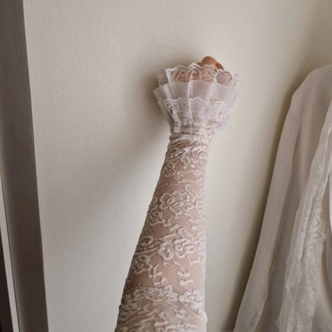 Kauniit helmikoristellut irtohihat, molemmissa päissä kuminauhat. Koko S-L