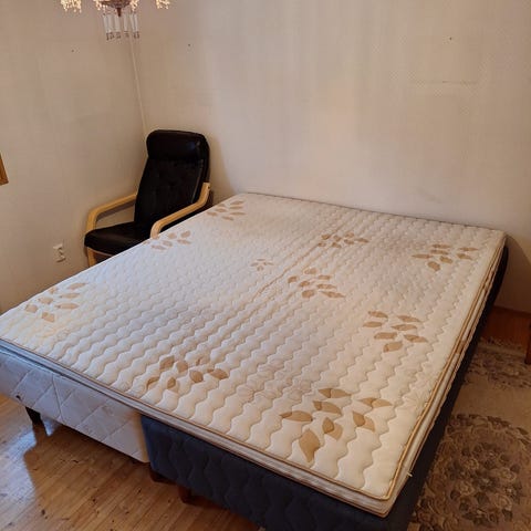 Kuvan vanhat Runko sängyt. Koko 90x200. Päällä pidetty aina käytössä ollessa noita vahvasta puuvillasta ommeltu ja suojia. Sekä petaria lakanoineen. Silti varmasti tahraa löytyy ja kulumaa. Päälliset pesty, runkoja ei. Joskus korjattu joku tukipuu alta. Jämäkät hyvät nukkua yhä. Ei petareita. Jalkoja. 25370 Pertteli. 80e molemmat yhteensä.
