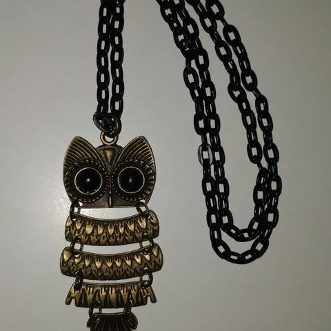 Mustasilmäinen pöllö korun pituus noin 41cm.
