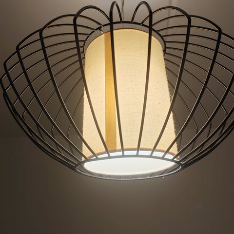 Myydään hyväkuntoinen kattovalaisin. Valaisin on musta ja siinä on kaunis valkoinen lasikupu.