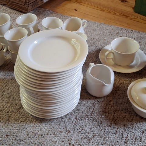 Todella siisti ja muutaman kerran käytössä ollut Arabian Arctica kahviastiasto sis. 7 kahvikuppia, 8 aluslautasta, 8 asettia, kermakko ja sokeriastia.