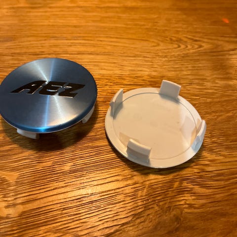 Käyttämättömät keskikapselit punaisella wrc-logolla vanteisiin. Ulko halkaisija 50mm ja sisä 45mm.