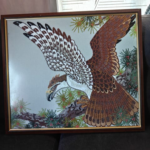 Kuvan koko n. 49x38cm. Vuonna 1975 tehty kanavatyö kehystetty. Siisti, puhdas ja ehjä.