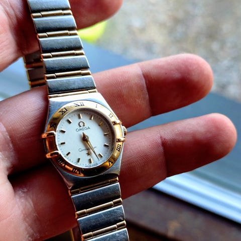 Omega Kultakello Timattileikatulla Safiirilasilla Vintage!