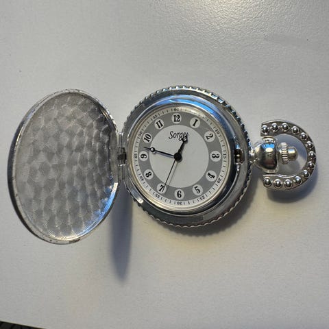 Viisari irronnut, joten pitäisi laittaa paikoilleen. Kellon takana nimi ja vuosiluku 24.4.1923.