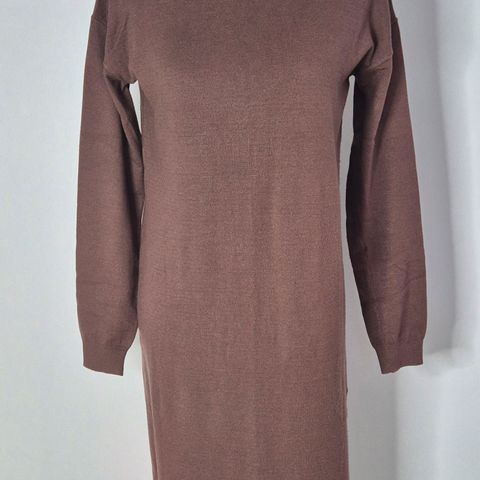 Vähän käytetty naisten musta H&M:n neulemekko. Materiaali on 95% viskoosia ja 5% silkkiä. Pääntiellä on muovihelmikoristeita. Koristeet näkyvät paremmin lähikuvassa, jossa vaatteen väri on vääristynyt. Sekä koristeet että mekko ovat oikeasti syvän mustat. Mekon takapituus niskasta helmaan mitattuna on 95 cm.