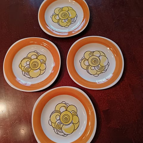 Ehyet ja hyvässä kunnossa olevat tarjoilulautaset/leipälautaset x seitsemän (7) kpl. Halk. 17 cm. Laatuposliinia.