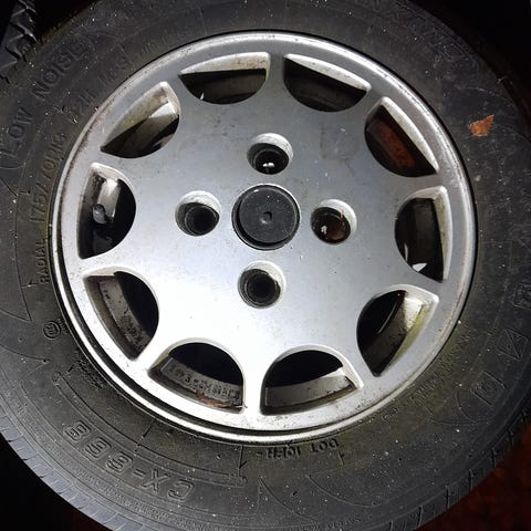 Tullut takaveto toyotan mukana. 7x15 et38. Päällä murtuneet 205/50/15 kumit. Hapettumaa tullut jo reunoihin säilytyksessä.