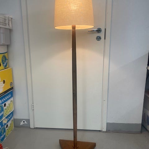 Valaisin -Mäkelän vanha lamppu. kork 45cm. varjostin halk 21 ja 31cm, jalka Alabasteria. vanhanmallinen pistoke.