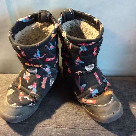Puna-mustat kesäkengät / kangaskengät nopeasti jalkaan vedettävät spiderman kuvalla. Sisäkankaassa pieni repeämä (kuva 5). Sisäpohjallinen n. 18,5 cm.