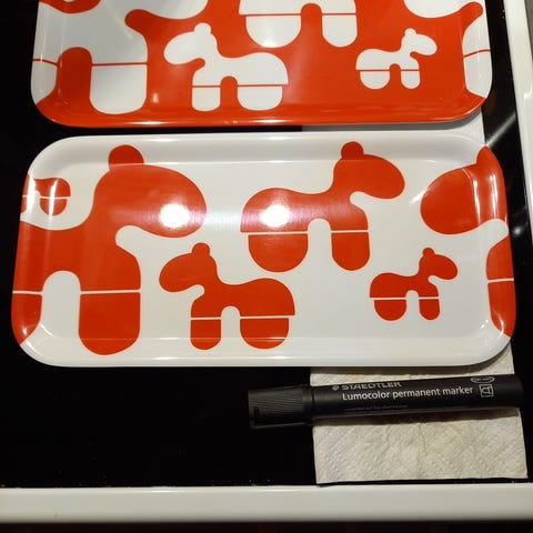 Eero Aarnio-tarjotinsetti, koko 13x27cm, konepestävät. Käyttämättömät. Hinta 20€, noutaen.
