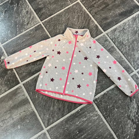 Lämmin fleecetakki sini-vihreä. Koko 110cm.