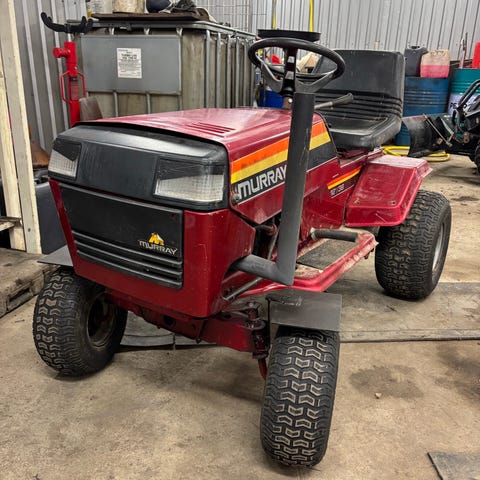 Ajettavan traktori murrayn osia esim.konepeitto,moottorin päällikansi jossa öljytikku,ratti ja ilmansuodatin ja siihen päälli muovi kotelo.ajovalot johtoineen ja muovi kehyksineen.