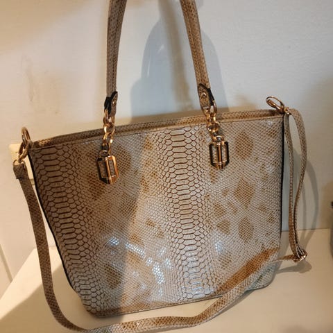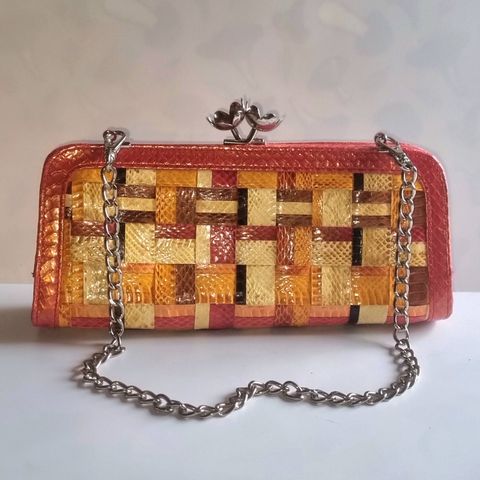 Myydään ihastuttava käärmeennahka jäljitelmä pieni laukku rientoihin. Käyttämätön.