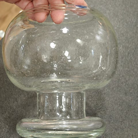 Nuutajärven ruskea Sargasso-malja, korkeus noin 16 cm. Suunnittelija Kaj Franck.