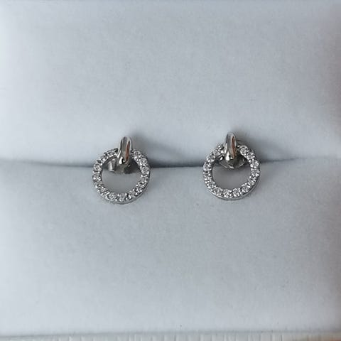 Myydään tarpeettomana valkokultaiset korvakorut. Zirkonit 2 mm per koru.