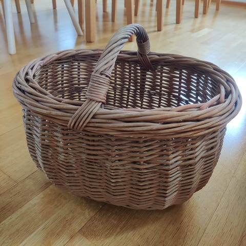 Punottu viininpunainen kori.Metalliset jalat.Kork34 pitää.22 syv.16