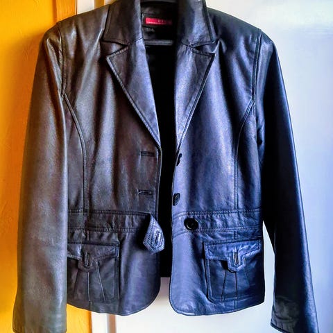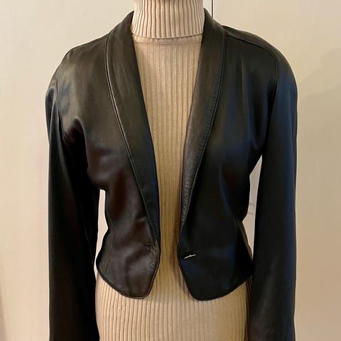 hakusanat; naisten nahkatakki 44, ruskea nahkatakki 44, naisten lyhyt nahkatakki 44, liskokuosinen nahkatakki, nahkableiseri 44, liskonnahkatakki 44