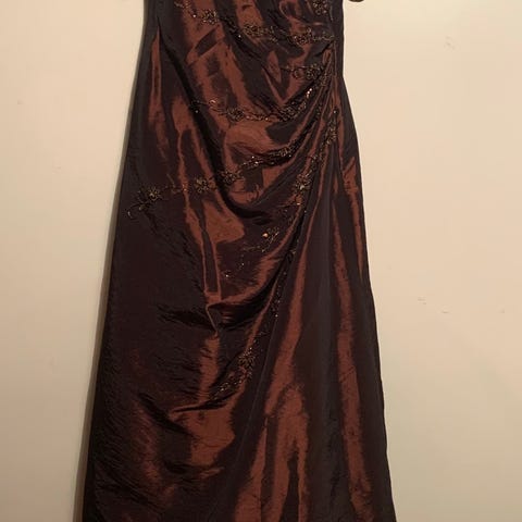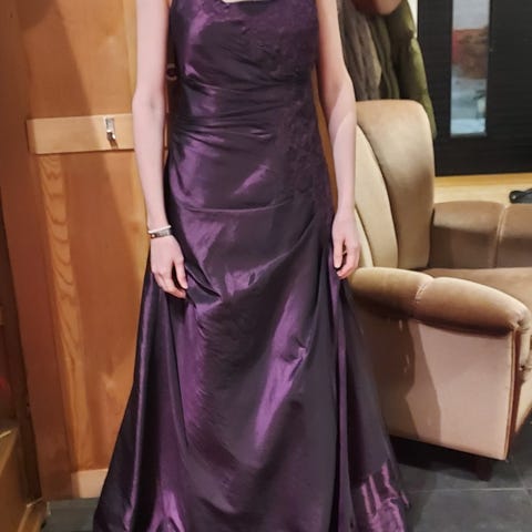 Hurjan kaunis, kullanhohtoinen iltapuku vanhojentansseihin tai muihin juhliin. Kauniita yksityiskohtia, koko 36-38, sopiva n. 170-senttiselle matalien kenkien kanssa.