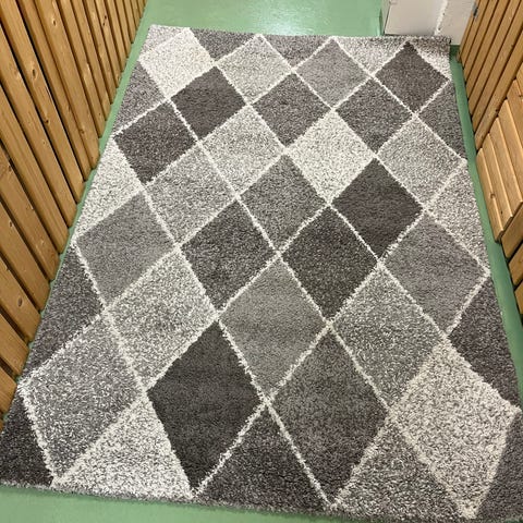 Nurjalla puolella on yhdessä nurkassa ommel purkautunut. Matto on juuri imuroitu, mutta pesu jää ostajalle.