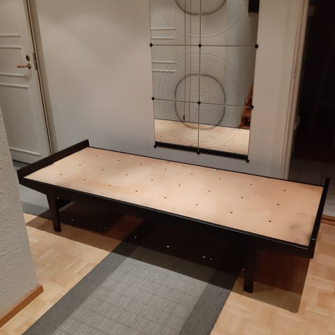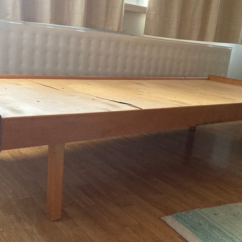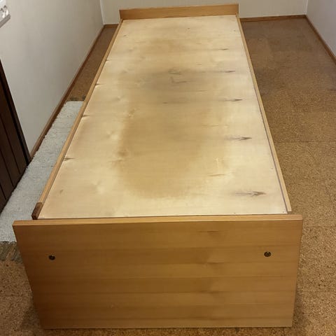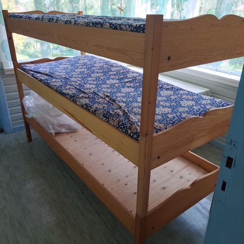 2 kpl laverisänkyjä, 195x78cm,vuoteiden korkeus 38cm ja pääty 29cm, muutamia pintanaarmuja, hinta 25e/kpl