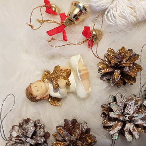 3kpl. roikkuvia glitter koristeita, enkeli ja pari eläinhahmoja