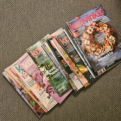 Myyn kuvanmukaiset Kotivinkki lehdet 2kpl.Numero 6 vuodelta 2001 sekä numero 22 vuodelta 2020. Niissä on paljon lukemista ja sisustus ideoita sekä ruokaohjeita ym. Lehdet ovat uuden veroisia. Hinnan lisäksi postikulut tai nouto Ruoveden keskustasta.