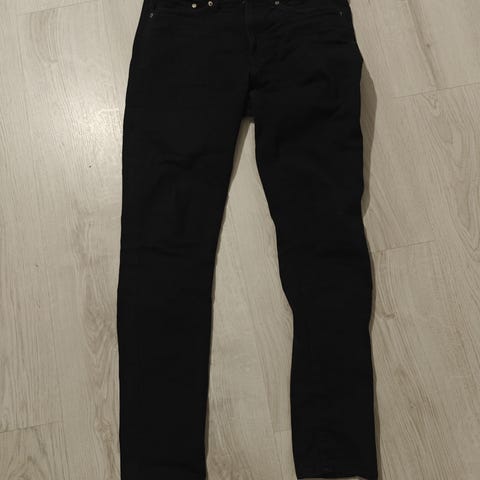 Ehjät mustat HM:n farkut, koko EUR 32 (M). Pituus vyötäröltä lahkeensuuhun 104 cm ja haarasta 80 cm, vyötärön halkaisija 43 cm. Lahkeen leveys haaran kohdalta 31 cm.