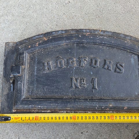 Vanhat valurautaiset Högforsin hellan luukut. Sisämitat 28x15 cm ja ulkomitat 34x19,5 cm