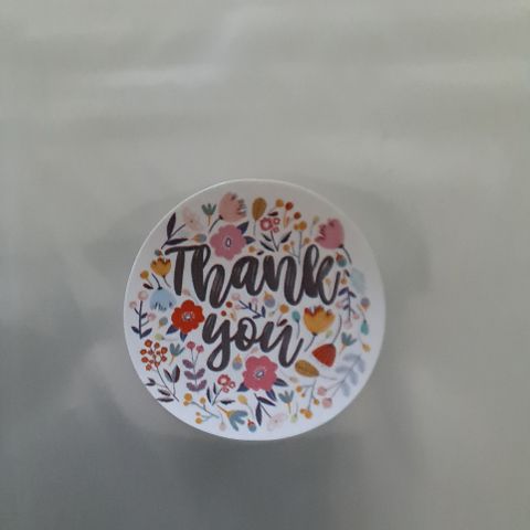 Thank you tekstillisiä tarroja . Tarroja on 1 erilaista. Halkaisija noin 2.5cm.