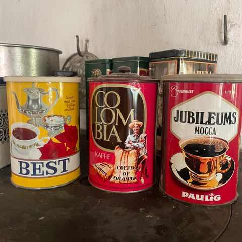 Nämä meidän purkit ovat olleet keittiökäytössä ja sen jälkeen huonosti varastoituina. Niitä on 4 kpl. Äitini perhe asui Okan talossa Luotsikatu 4:ssä Katajanokalla.