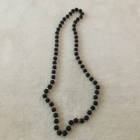 Pilgrimin mustat pienet kevyet helmet, pituus n. 120 cm. Uudenveroiset.
