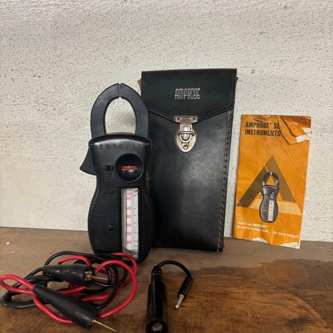 Myydään rekvisiitaksi vanha autokorjaamon jännite-/virtatesteri. Testausjohdot hävinneet.