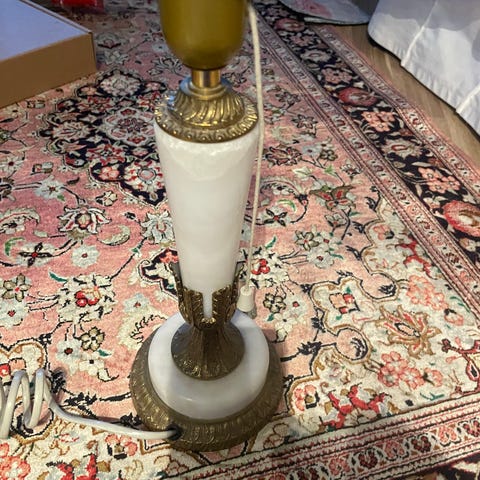 Hieno kokonaisuus: Käsintehty varjostin ja valaisimen runko on marmoria. Varjostin : halkaisija 50 cm ja korkeus 45 cm.