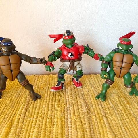 Myynnissä paljon Turtles leluja ja oheistavaraa 80-90 luvulta. Myös 2000-luvun Turtles.