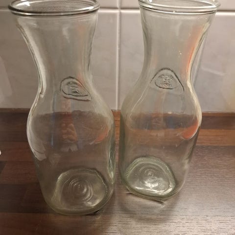 Yksi since 1852 karahvi. Korkeus 18,5 cm, tilavuus 375 ml. Sopii hyvin vaikka maljakoksi. 8 euroa