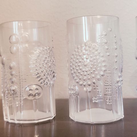 Oiva Toikan 1960-luvulla suunnittelemia Flora juomalasia, kirkas lasi, 36 cl. (Ovh39.90€/kpl) Iittalan tarrat tallella. Osta niin monta kuin haluat. Tai osta 6 kpl, 9€/kpl ja saat yhden kaupanpäällistä. En lähetä. Voin toimittaa lähialueille omien ajojen mukaan. Ehkä jopa 90 km säteellä voin tulla vastaan, suunnasta riippuen. Kaikki uusia käyttämättömiä.