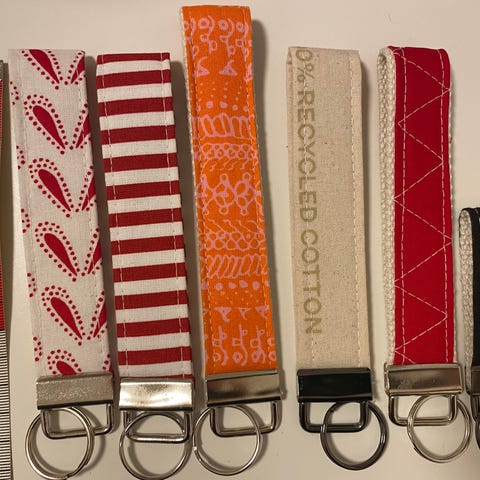 Uudesta räsymatto - kankaasta siististi ommeltu avaimenperä / laukkukoriste. Päässä lenkki avaimille tai lukkoon kiinnitettäväksi.