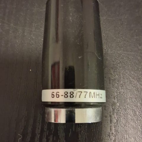 Eli auton vesikouru kiinnityksellä oleva radioamatööriantenni 21MHz, tässähän ei ole varsinaista UHF-liitintä vaan koksi kytketään suoraan antenniin, kuvassa testinä UHF-liitin että sain mitattua minkä alueen antenni, säätötikkua joku lyhentänyt liikaa mutta mukaan tulee 70cm pitkä saman paksuinen tikku josta saa pätkittyä sopivan pituisen.