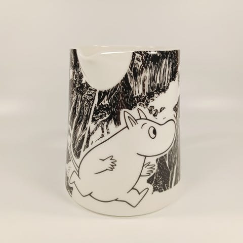 Tuotannosta poistunut Arabian muumikannu Seikkailu. Kaadin on uusi. Tarra on paikoillaan, kannun pohjassa.