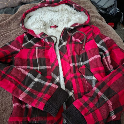 Violettivärinen takki,80% lampan villa, koko 40-42, 2 taskua,hyväkuntoinen.