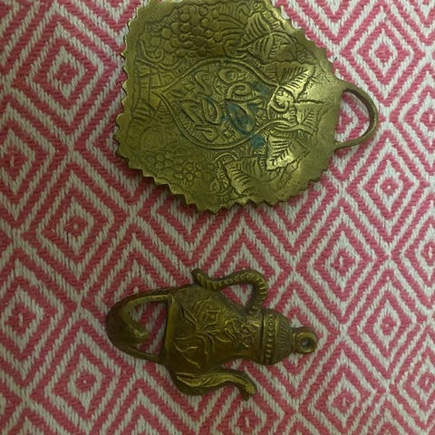 Vintage moroccan-mooris/hand painted /käsinmaalattu savikulho/kauniit messinki yksityiskohdat.