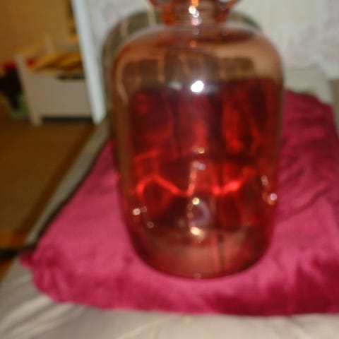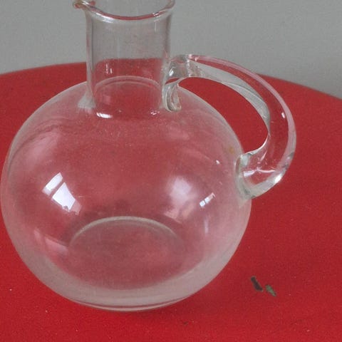 Kirkas lasipullo, jossa metallinen kierrekorkki. Lehmä aiheinen.