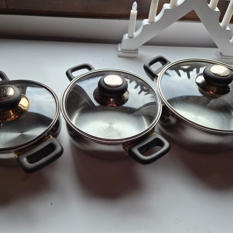 Myydään hyväkuntoiset lasinen ja teräksinen kattilankansi yhteishintaan. Lasisen H23cm ja teräksisen H23cm. Kannessa tukeva nuppi josta saa hyvän otteen. Postikulut 9euroa. Yhdistelen postikuluja. En käytä ToriDiiliä.
