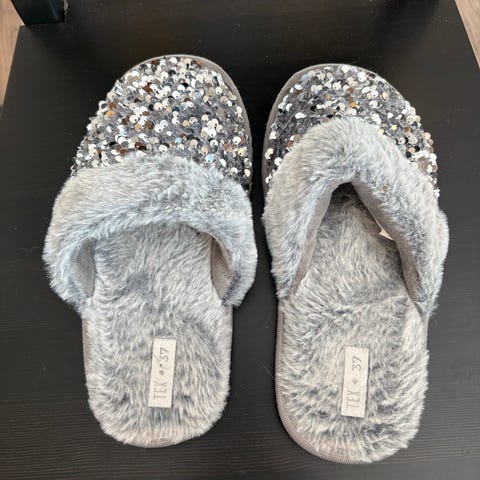 Sauli-aamutossut, siisti käytetty kunto, kokomerkintää ei ole, mutta arvio koosta on tehty oman jalan perusteella, sisämitta noin 22 cm, mmm, koirakoti
