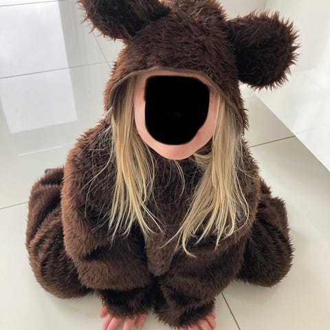 Iso karhu,sisään mahtuu kun isokokoinen niin pienikokoinen ihminen. Käytetty pari kertaa lapsen syntärissä. Hauska ja iloista.