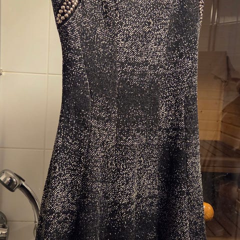 Mekkoa ei lyhennetty, ja aloituskuvan henkilöllä pituutta 171cm ja 10cm korot. Mekko siis pitkä. Materiaali 100% polyesteri. Ostettu Dresshousesta.