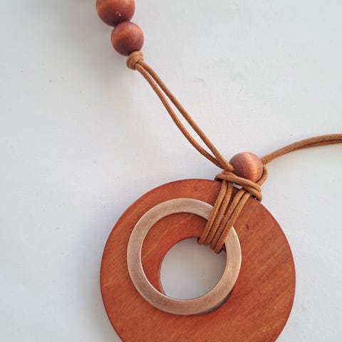 Aarikka kaulakoru, murr. oranssi puu, pinkki punos