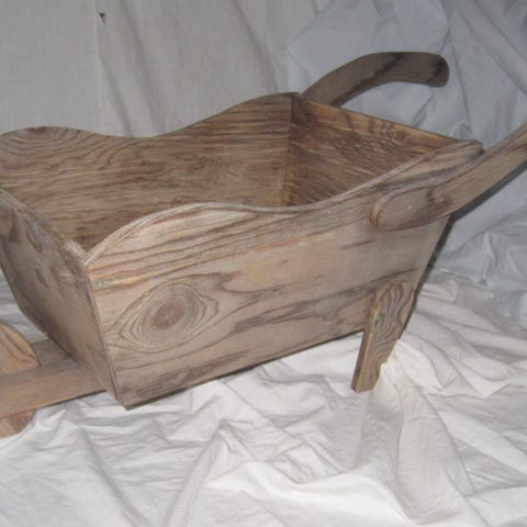 Puinen vanha kärry, joka soveltuu kukkaistutukseen. Kärryssä on kaksi pyörää ja se on valmistettu puusta. Sopii käytettäväksi puutarhassa mm koristeena.