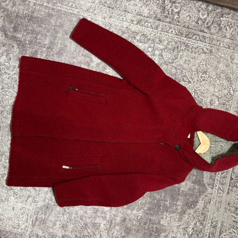 Käytetty, joten pientä kulumisen jälkiä takissa on, ei kuitenkaan isoja reikiä. Kehtaa pitää päällä.